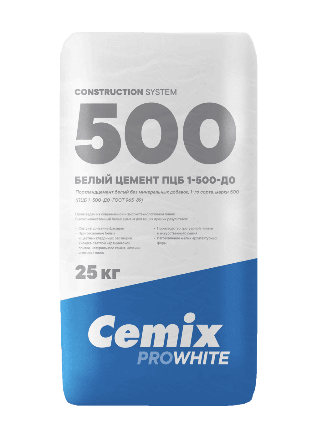 Компания «Стройресурс» реализует высококачественный белый цемент Cemix ProWhite (Цемикс) ПЦБ 1-500-Д0 (ЦЕМ I 52,5 Н), марка 500, в фасовке по 25 кг. Белый портландцемент без минеральных добавок и примесей, с однородным составом, предназначен для изготовления архитектурных и декоративных элементов, фасадных и отделочных растворов, тротуарной плитки и малых архитектурных форм. Готовые изделия выдерживают нагрузку до 500 кг/см², а высокая белизна позволяет получать любые оттенки с помощью пигментов. Цемент Cemix (Цемикс) упакован в многослойные бумажные мешки по 25 кг. Доступны оптовые и розничные поставки, с доставкой по Ростову-на-Дону, ДНР, ЛНР, Крыму и Югу России.